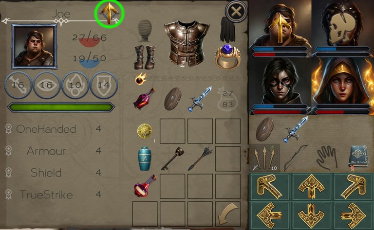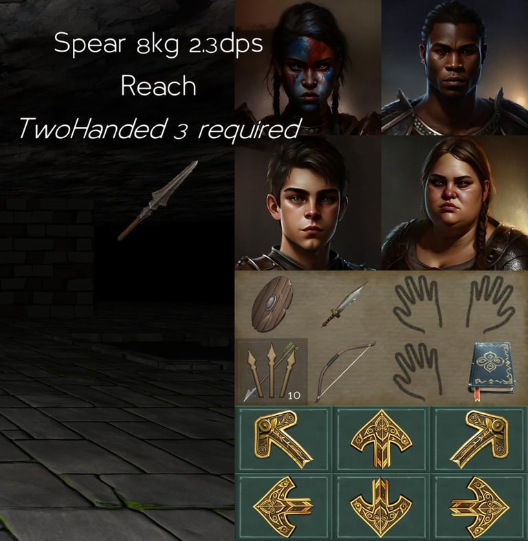 For instance this spear requires the character to have the Two Handed skill at at least rank 3. If we try to equip it on the top right character (who does not have the skill at 3)