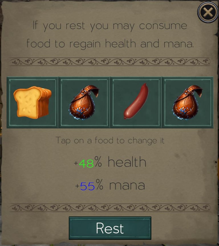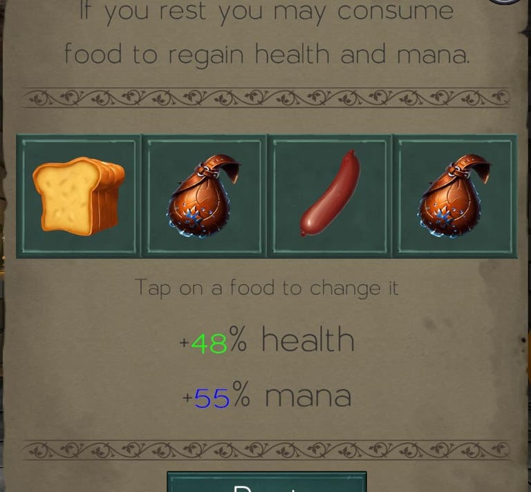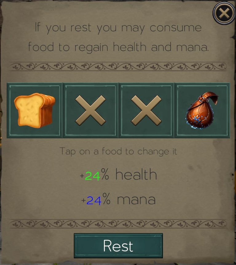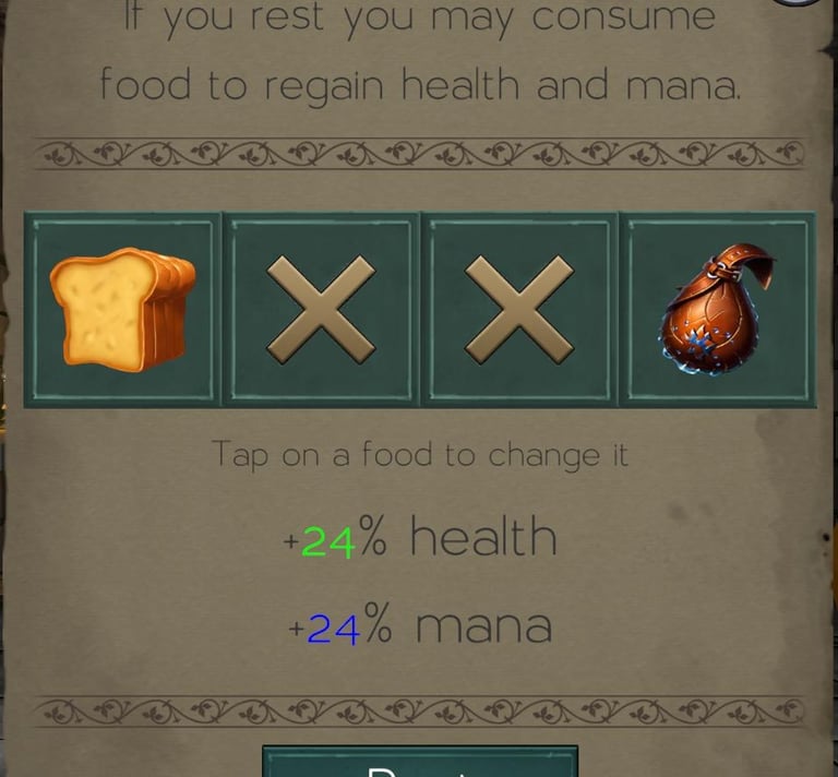 When you rest what you consume determines how much health and mana you get back. There are up to 4 slots for food.